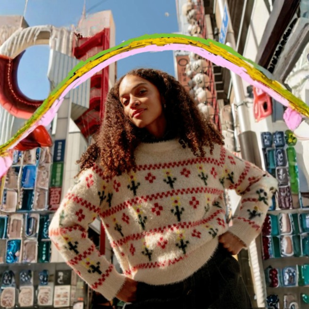 Featuring a creamy neutral base with vibrant red floral detailing and contrasting dark accents, this jumper brings a fresh, modern twist to classic knitwear. The relaxed fit and soft fluffy finish make it as comfortable as it is stylish—perfect for layering on cooler days or adding a pop of charm to your everyday look.