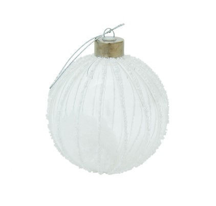 GLASS CLEAR WHITE BAUBLE- 10CM | Christmas