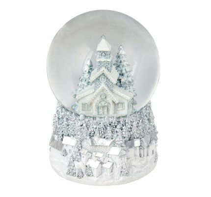 RESIN CHURCH SNOWGLOBE- SILVER/WHITE | LARGE 17CM